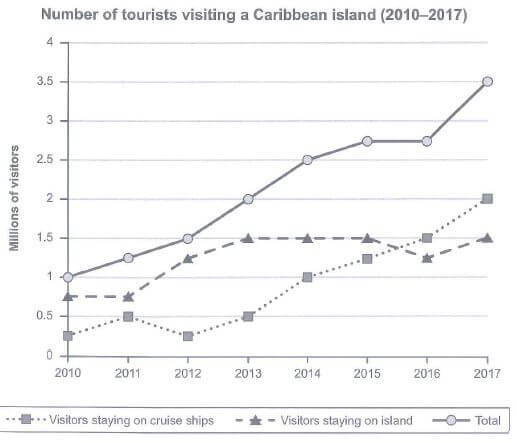 The graph below shows the number of tourists visiting a particular Carribbean Island between 2010 and 2017.