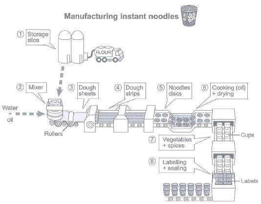 The diagram below shows how instant noodles are manufactured.