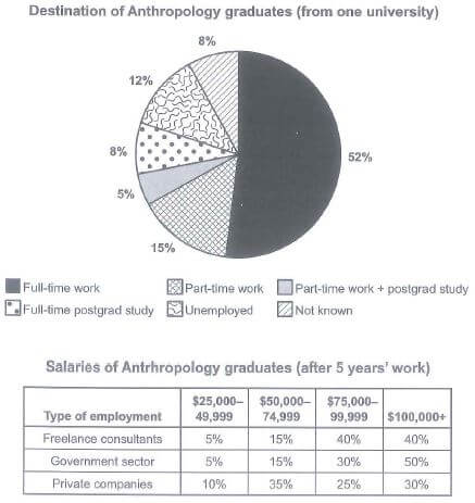 The chart below shows what Anthropology graduates from one university did after finishing their undergraduate degree course. The table shows the salaries of the anthropologists in work after five years.