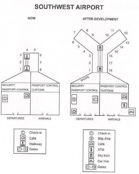 The plans below show the site of an airport now and how it will look after redevelopment next year.
