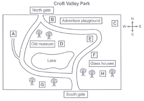 Locations 11 café 12 toilets 13 formal gardens 14 outdoor gym 15 skateboard ramp 16 wild flowers |