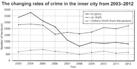 The chart below shows the changes that took place in three different areas of crime in Newport city centre from 2003-2012.