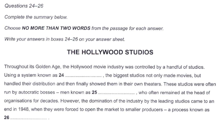 There are two types of Summary Completion tasks – one with a box of possible answers and the other without any option, just like a gap-filling question.